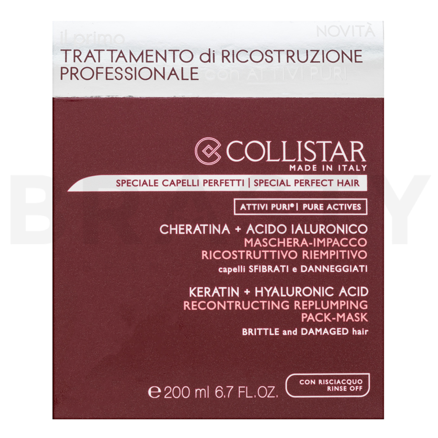 Collistar Special Perfect Hair Keratin+Hyaluronic Acid Mask è un trattamento rigenerante rivoluzionario progettato appositamente per le donne che desiderano rinnovare e rivitalizzare i propri capelli. Questa maschera fa parte della prestigiosa linea di prodotti per capelli del marchio Collistar, noto per la sua cura innovativa dei capelli. La maschera è la scelta ideale per chi si confronta con capelli molto danneggiati, secchi e fragili. Grazie alla sua formula unica che combina cheratina e acido ialuronico, offre un'idratazione intensa e ripristina la struttura del capello.
