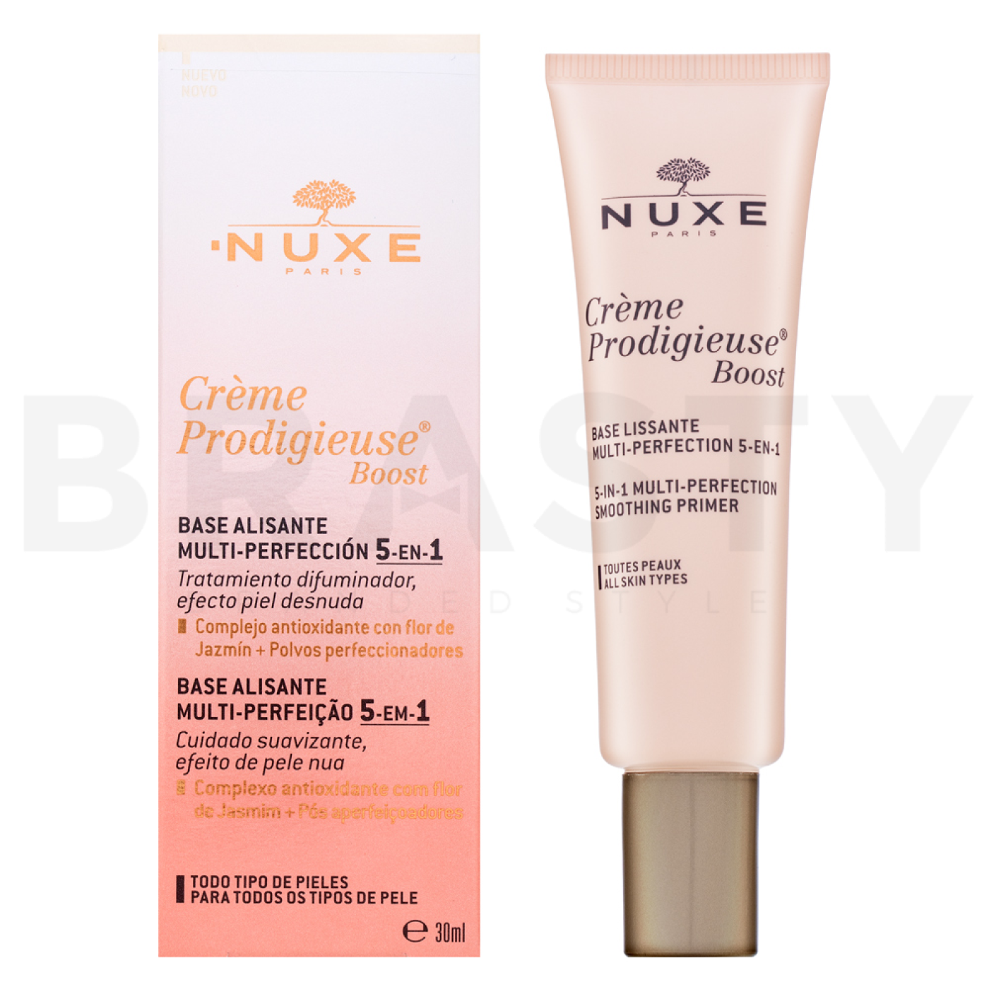 Scopri la magia di Nuxe Creme Prodigieuse Boost 5-in-1 Multi-Perfection Smoothing Primer, la base levigante che trasforma la tua pelle in una tela perfetta. Questa base innovativa della collezione Creme Prodigieuse Boost è progettata per offrire un'immediata uniformità e luminosità al tuo incarnato. Grazie alla sua texture leggera, si applica facilmente e si adatta a tutti i tipi di pelle, che sia normale, mista o problematica. Il marchio Nuxe è noto per l'accento sugli ingredienti naturali e l'efficacia, riflessi anche in questo prodotto ideale per l'uso quotidiano.