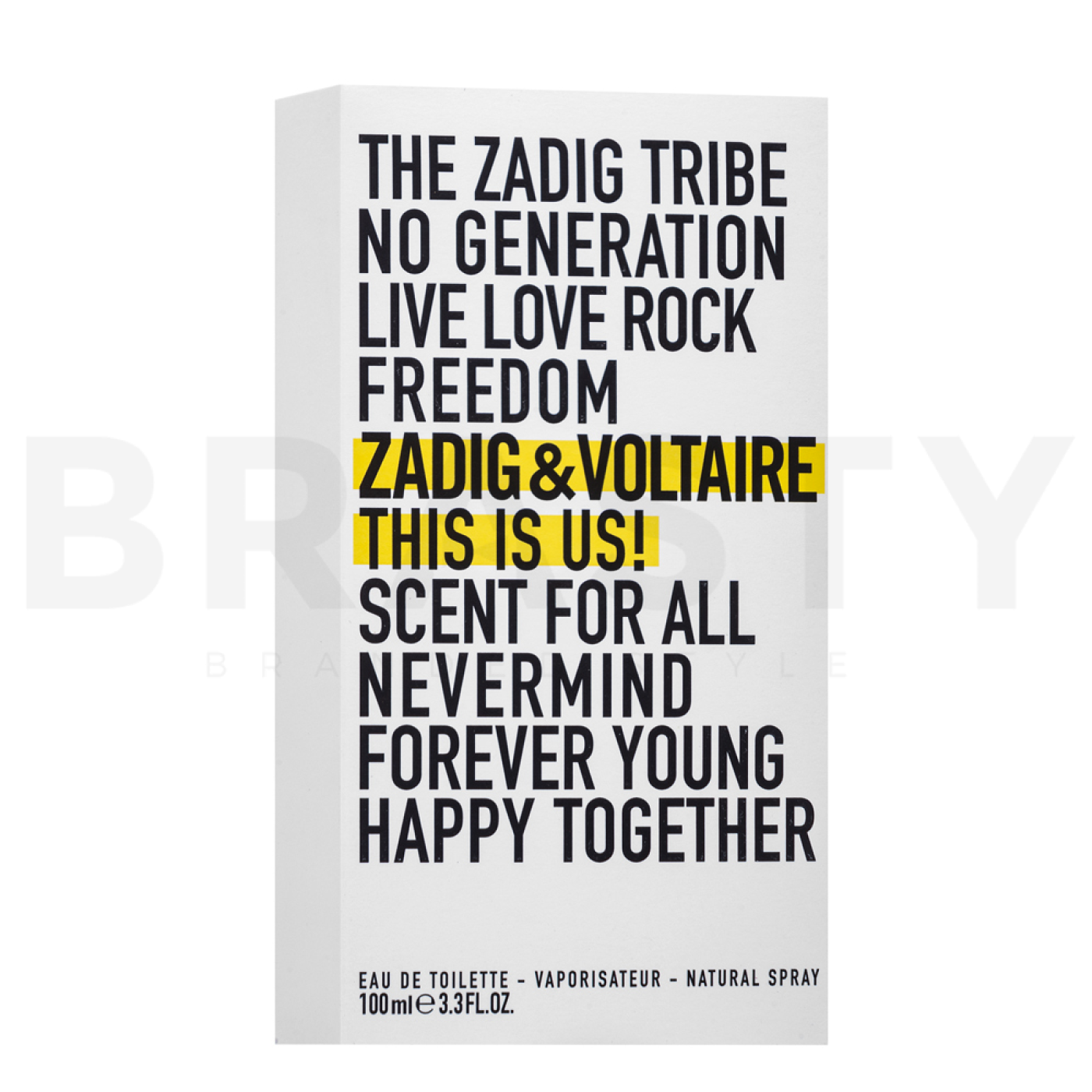 Zadig & Voltaire con i suoi prodotti spinge regolarmente i confini della profumeria tradizionale. This is Us! è un altro esempio di come un profumo possa essere non solo un accessorio, ma anche un'espressione di stile personale e attitudine alla vita. Questa eau de toilette è adatta a tutti coloro che vogliono vivere appieno e non hanno paura di essere diversi.